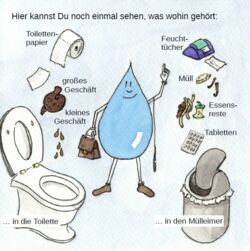 Auf lustige Art und Weise wird den Kindern gezeigt, dass Feuchttücher, Medikamente und Essensreste nicht über die Kanalisation entsorgt werden dürfen.